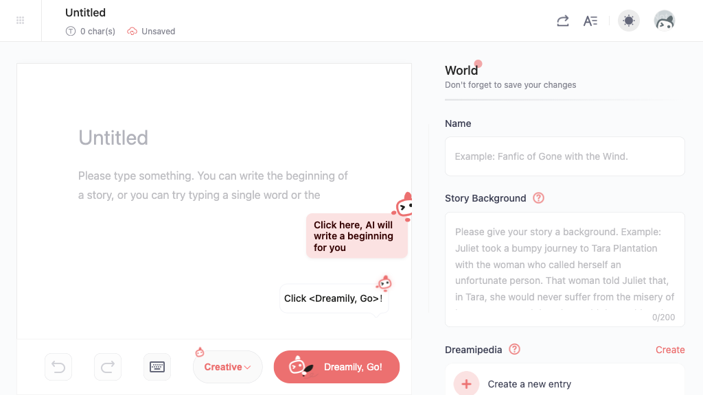 Ob du an einem Roman, einem Tagebuch oder einem anderen Schreibprojekt arbeitest – Dreamily kann dir dabei helfen, neue Einträge zu erstellen. Gib einfach die Hintergrundgeschichte deiner Geschichte ein und lass das Tool den Rest erledigen. Mit nur wenigen Klicks generiert Dreamily hochwertige Sätze und hilft dir dabei, deinem Schreibprojekt Leben einzuhauchen.