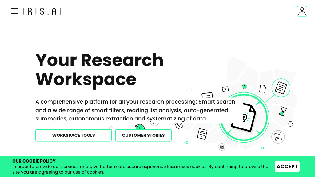 Iris.ai ist ein AI-Forschungsraum, der den Forschungsprozess optimiert. Mit dieser Plattform kannst du intelligent suchen, filtern, analysieren, automatisch Zusammenfassungen generieren und systematisch Daten extrahieren. Das spart Zeit und erhöht die Genauigkeit, sodass Forscher sich auf kreative Schöpfung konzentrieren können.